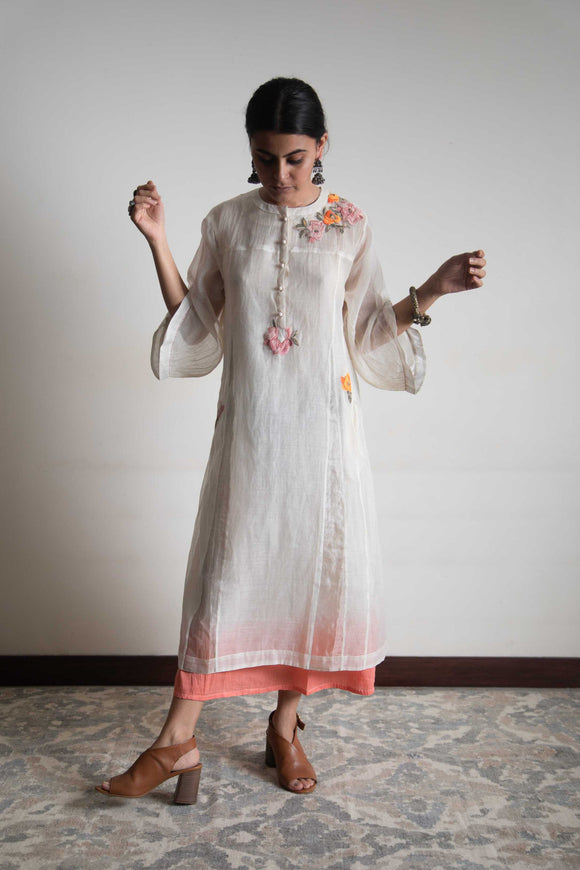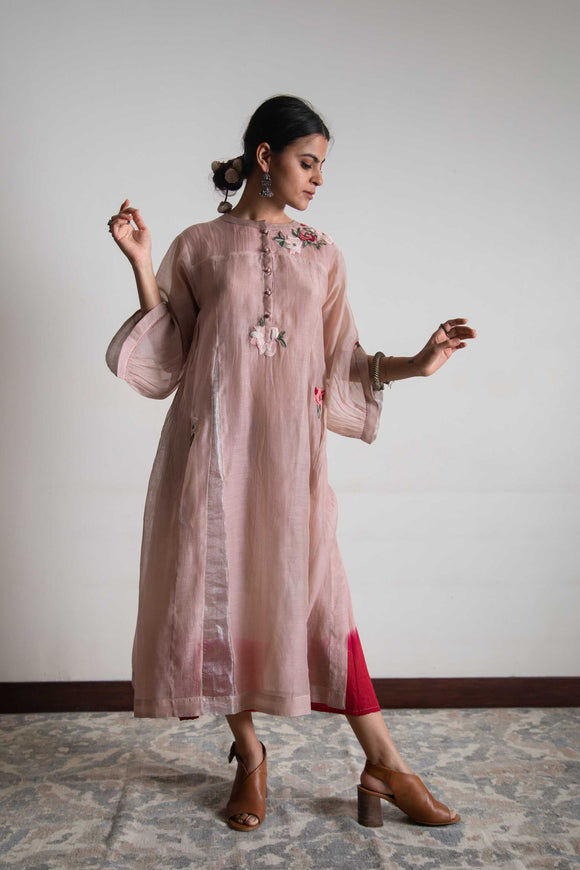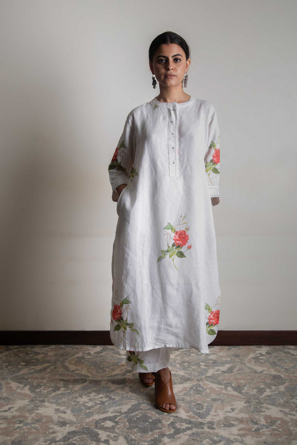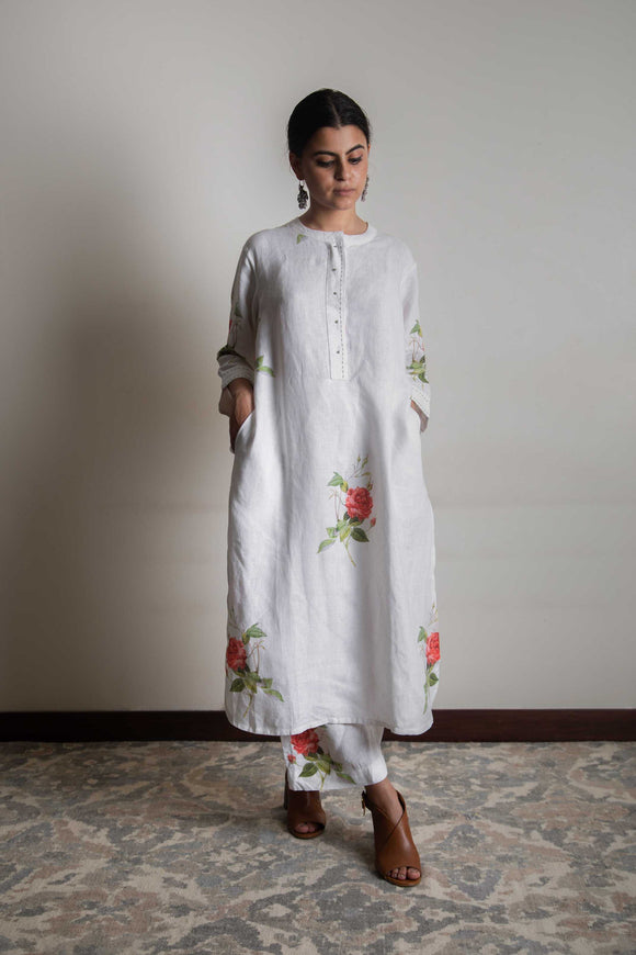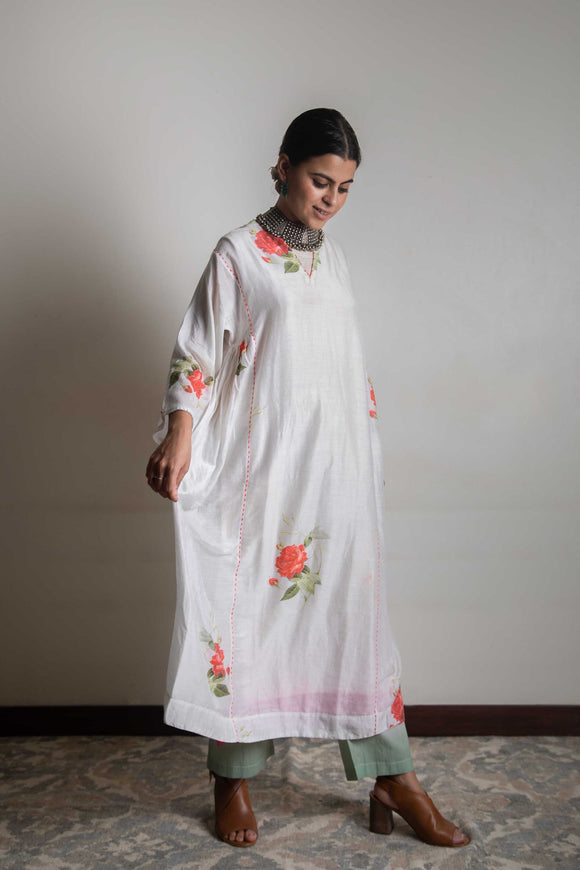 Feni Kurta • Rose Printed Chanderi